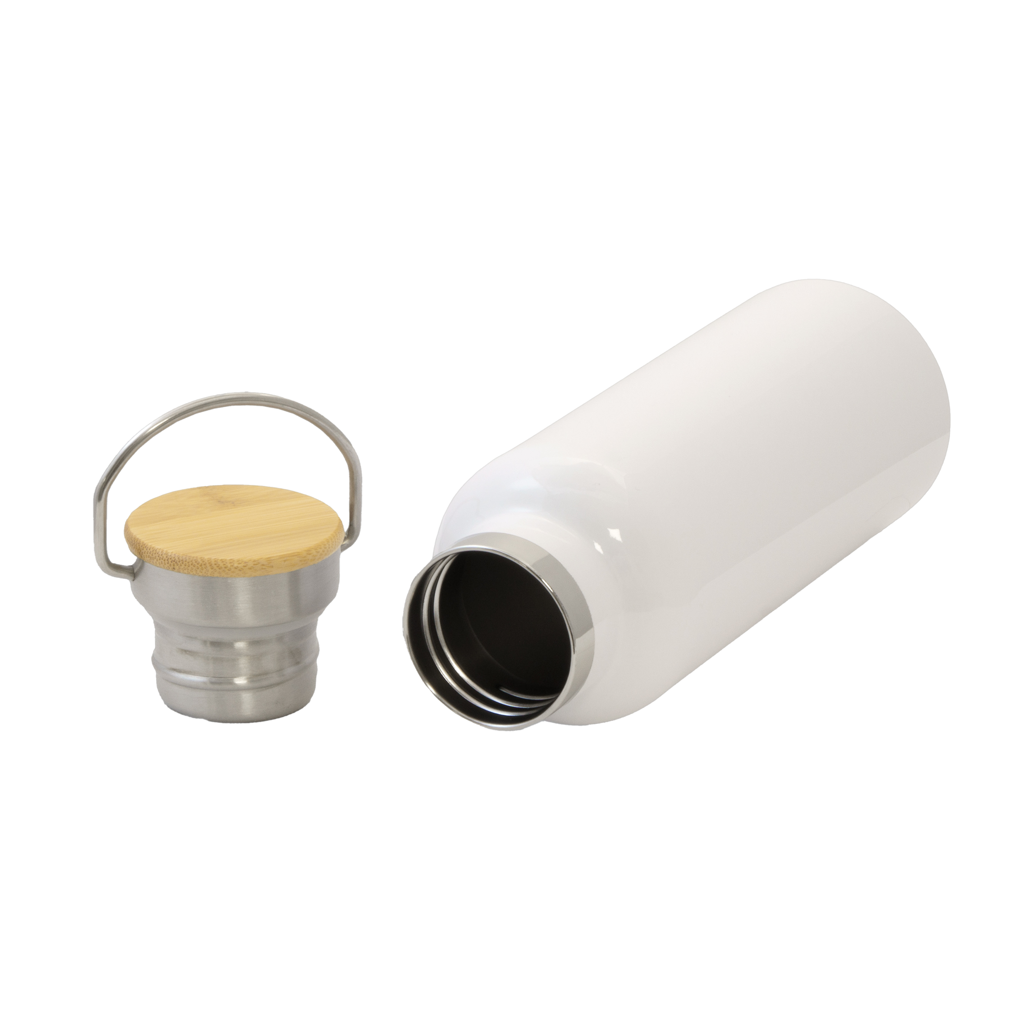 Enhance your POD lineup with the Stainless Bottle w/Bamboo Lid 21oz! Designed with double-walled stainless steel for superior insulation, it keeps beverages hot or cold for hours. The airtight bamboo lid with a swing handle adds style and portability, making it perfect for custom designs.