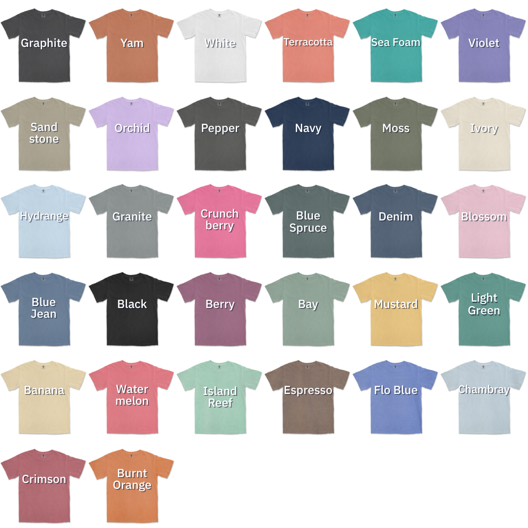 The Comfort Colors 1717 Heavyweight Unisex T-Shirt is the epitome of comfort and style combined in a classic piece of casual clothing. Crafted with meticulous attention to detail, this t-shirt offers a perfect balance of durability and softness, making it a favorite among those who appreciate both quality and comfort. Garment-dyed fabric gives it a unique, weathered look that only gets better with age. This process creates a vintage, lived-in appearance that's both stylish and inviting. Whether you're looking for the perfect canvas to express your personal style, a cozy layer for cooler days, or a reliable and long-lasting basic tee, the Comfort Colors 1717 Heavyweight T-Shirt is your go-to choice. It combines timeless design, durability, and unmatched comfort to become a versatile addition to your everyday wardrobe.